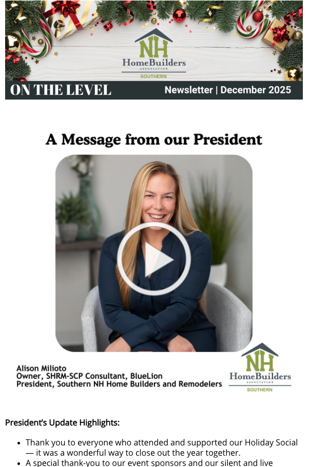 Southern NH Home Builders & Remodelers Association, a local affiliate of the National Association of Home Builders (NAHB) and the state New Hampshire Home Builders Association (NHHBA), is an association of industry professionals dedicated to providing quality housing opportunities through education, vision and advocacy for the betterment of our communities.